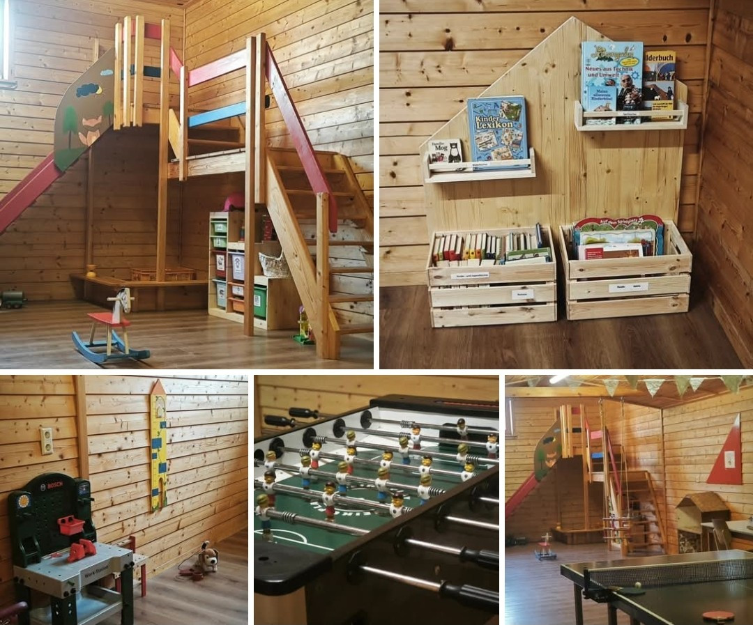 Viele aufregende Abenteuer warten auf strahlende Kinderaugen! Hier warten unvergessliche Erlebnisse: Kuscheln mit den Katzen, ein aufregender Ausritt auf dem Pony oder ein erfrischender Spaziergang im Wald, bei dem die Natur erkundet wird. Auf dem Spielplatz können die Kleinen sich richtig austoben, im Spielezimmer gibt es jede Menge Spaß und Unterhaltung. Und für noch mehr Bewegung sorgen unsere Kinderfahrzeuge und das Trampolin! Bei uns finden Kinder alles, was ihr Herz begehrt – und die Eltern können sich entspannen, während ihre Kleinen glücklich sind.
